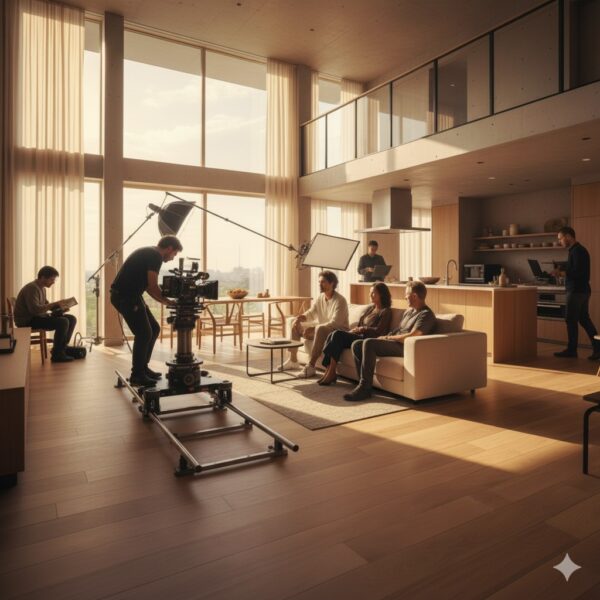 CMやドラマ、雑誌のスチール撮影では、高解像度のカメラで壁のテクスチャや床の継ぎ目、建具の納まりまで、あらゆるディテールがクローズアップされます。