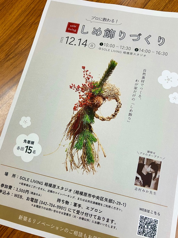 先日、SOLE LIVING(相陽建設)相模原スタジオでは「クリスマスリースづくり」のワークショップが開催されました。