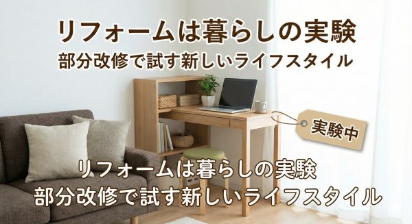 リフォームや部分改修を、“大掛かりな工事の手前にある暮らし方の実験”として捉えてみると、選択肢が少し広がるかもしれません。