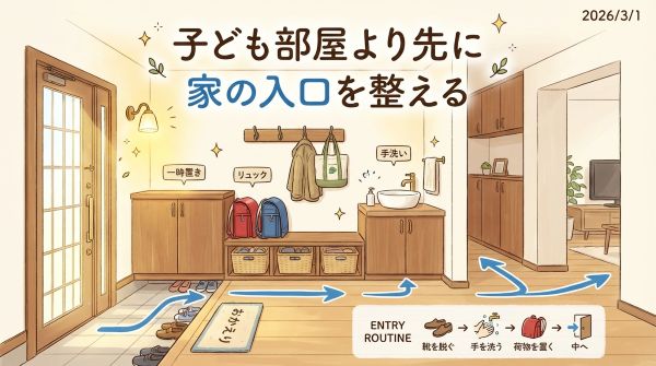 家づくりを考えている方も、「子ども部屋どうしよう」「勉強スペースどうしよう」と考えがちですが、実は先に効くのは“家の入口”だったりします。