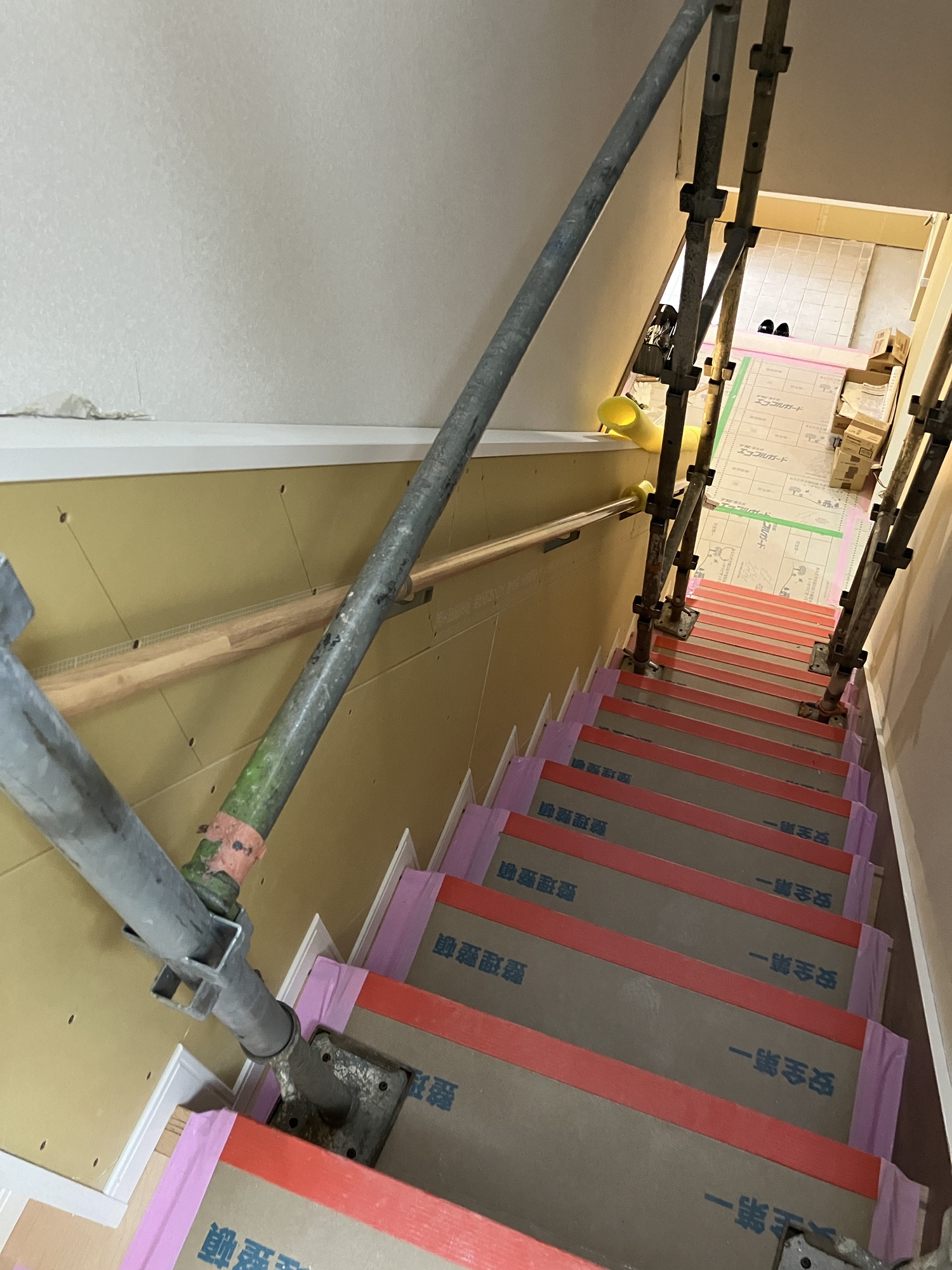 階段手摺りと2F子供部屋の建具吊り込みを行いました。