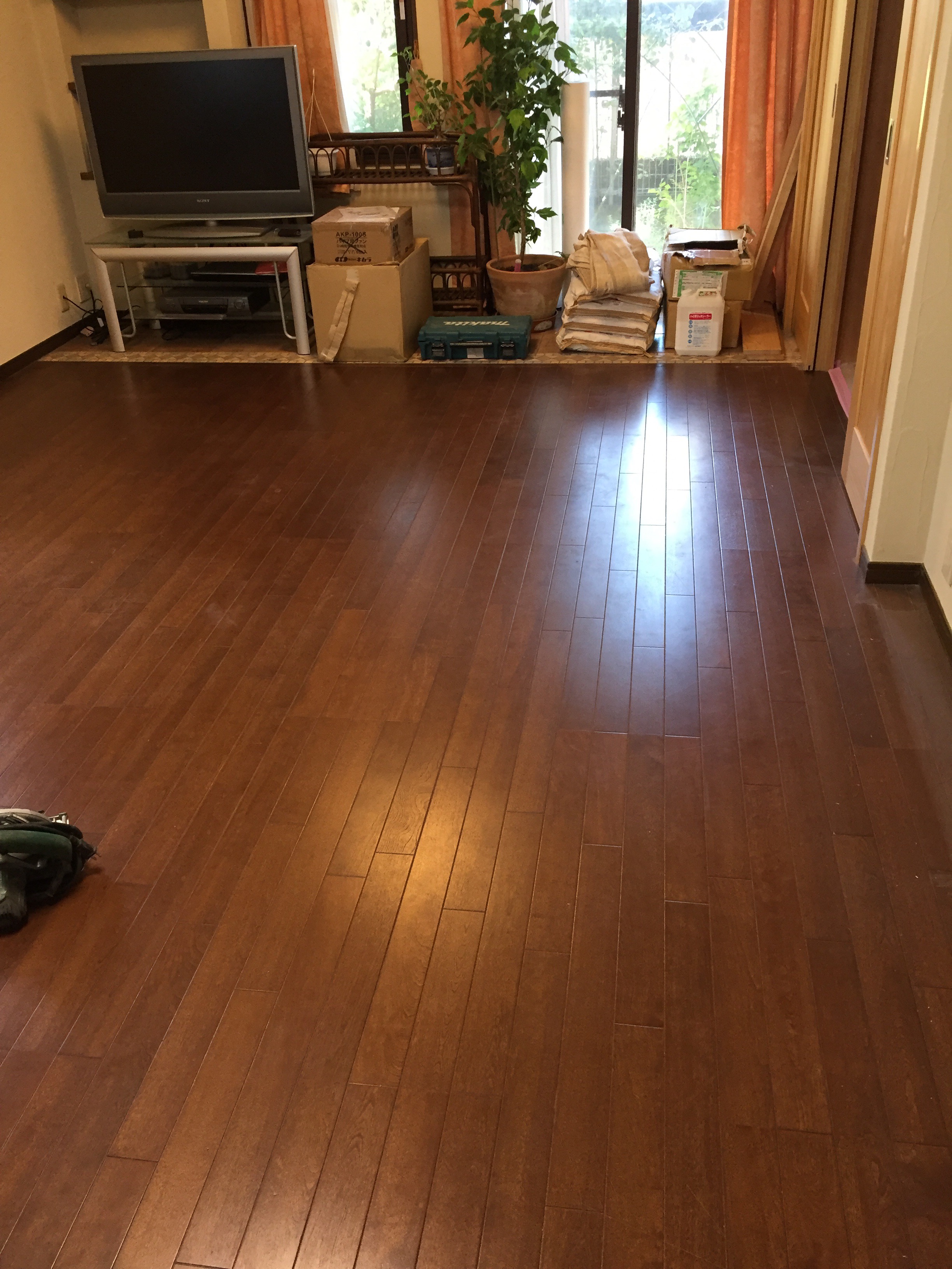 ドアの取っ手が壁に当たり、へこんだということで、その補修工事を行いました。