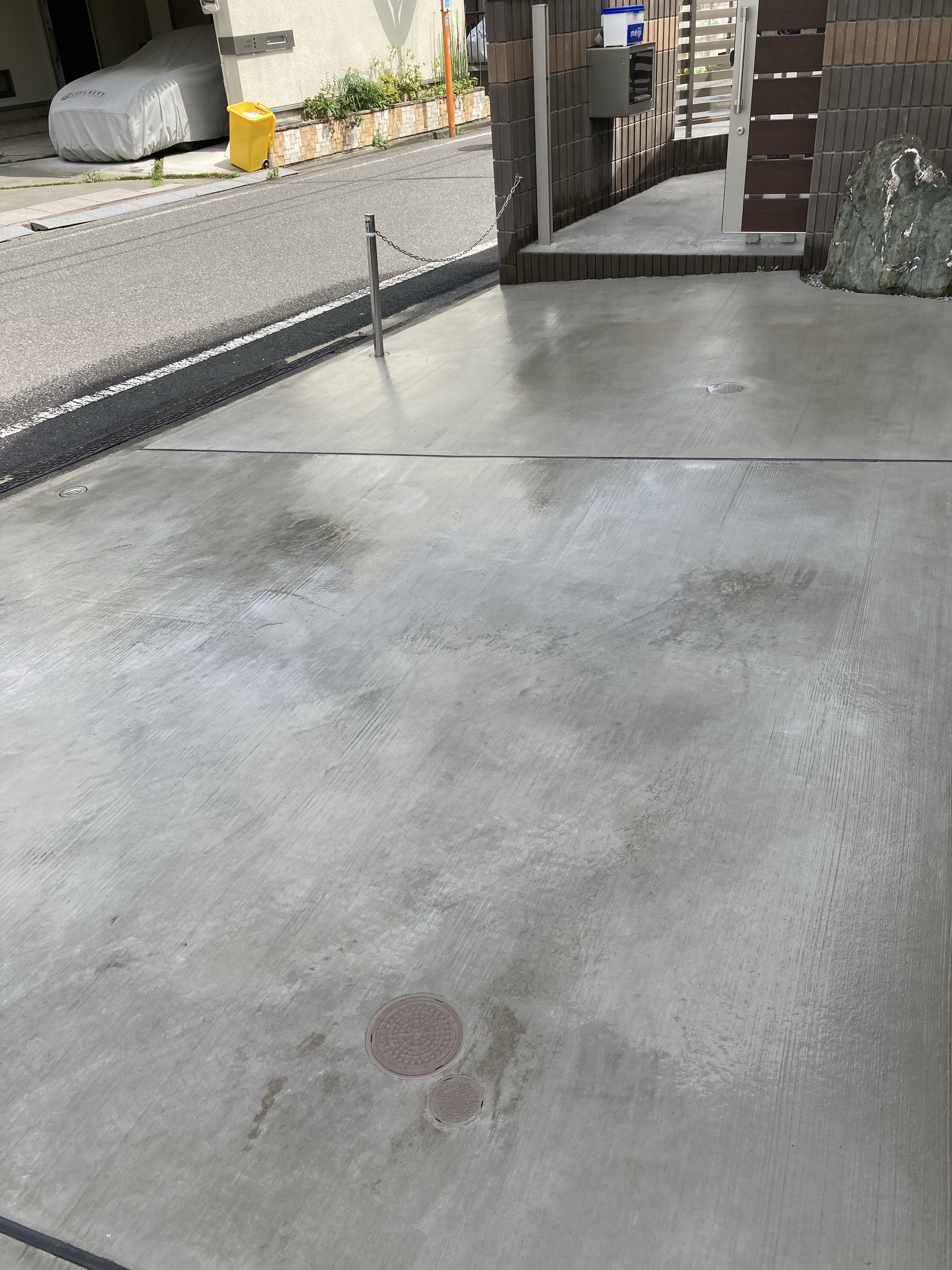 玄関、駐車場の高圧洗浄を行いました。