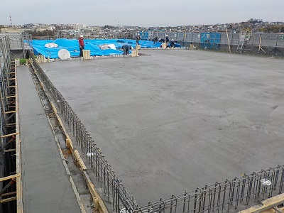 上記写真で撮ったように先程コンクリート打設作業が完了し、