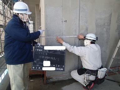 柱の寸法、柱垂直の倒れ等の確認をして頂きました。