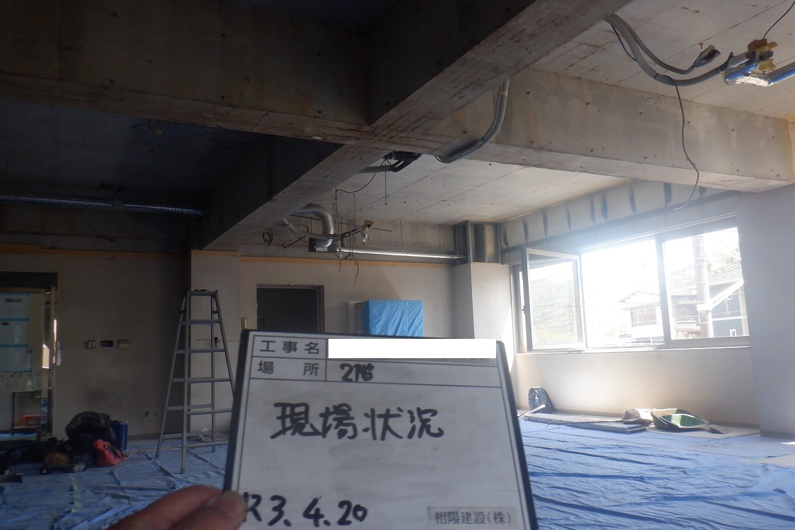 この後、エアコンを設置するために開口した天井材のフサギ作業を実施し、塗装作業に移行したいと思っています。