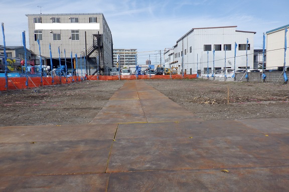 今週初め、某所現場では柱状改良工事を実施する際に重機ドリルの刃に付いた土が近隣側を超ええて汚さないように、仮設工事として単管でフレームを作成し、ブルーシートでカーテン状に養生出来るような対策をたてました。
