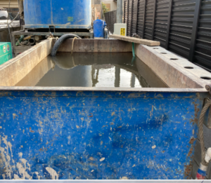 大工さんの作業台の下と正面にはブルーシートを敷いて二重で養生張り!