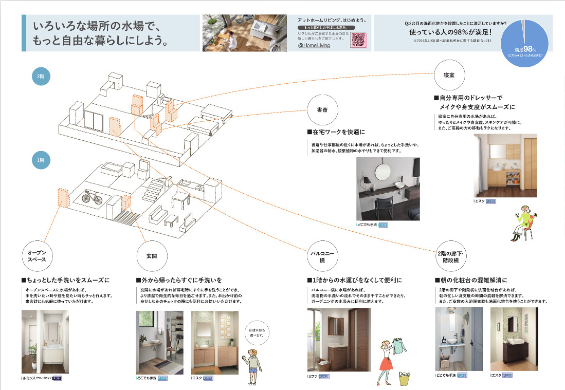 大き目の収納や洗面台や便利な機能の水栓が追加されたものです。
