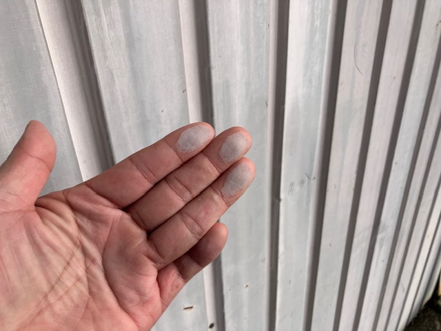 塗装の劣化を示すチョーキングの発生を確認しました。塗装によるメンテナンスをお勧めします。