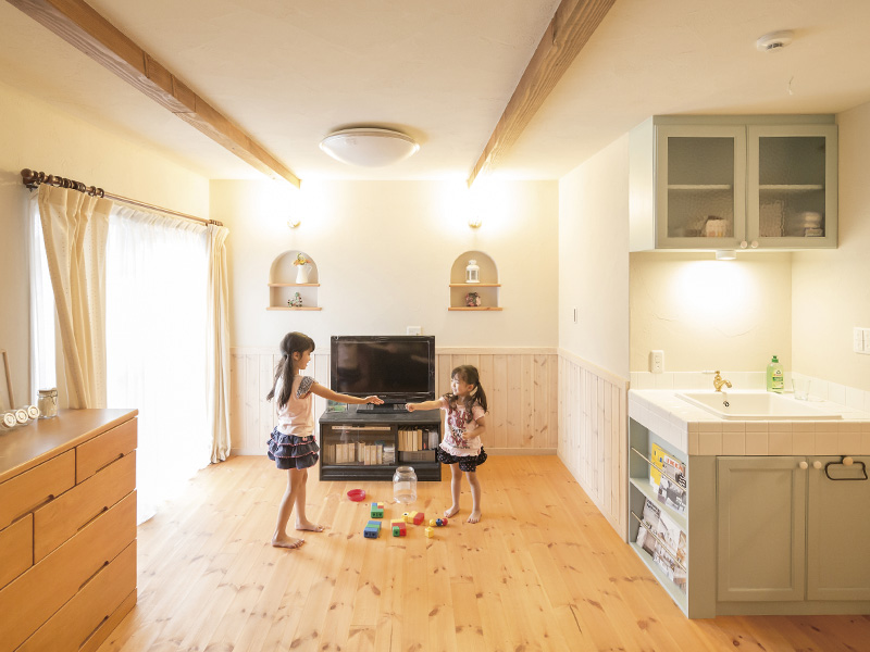 内部の仕上げには自然素材を使い心地よい空間を提案し、お子様が大きくなった時の部屋割りまで考慮したプランとなりました。