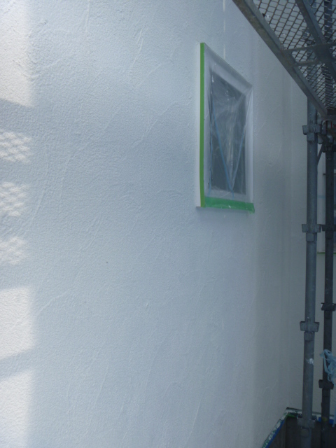 外部工事 先日左官工事でサッシ廻り・ワッシャー埋めが完了し