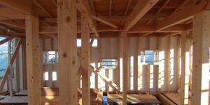 フローリング張りが始まり小屋裏・2階が張り終え現在1階フローリング張りを進めています