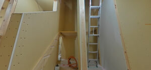壁が仕上がり、棚関係や電気器具を取り付けています