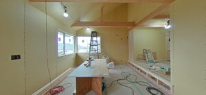 仕上げ工事で汚れないよう養生を施し、いよいよ内装仕上げ工事に入っていきます