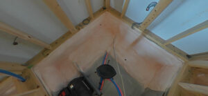 不織布を木材に留めて、一部に開口を設けた箇所から施工していきます
