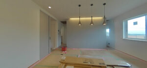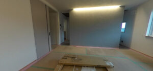 照明やスイッチの位置に来る場所を、仕上がる前に予め開けておきます