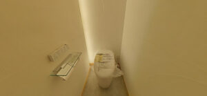 壁と隣り合わせとなる笠木、棚、巾木は先行して塗装を行います
