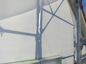 今日からようやく天気も良くなり外壁の左官仕上げ工事が始まりました。